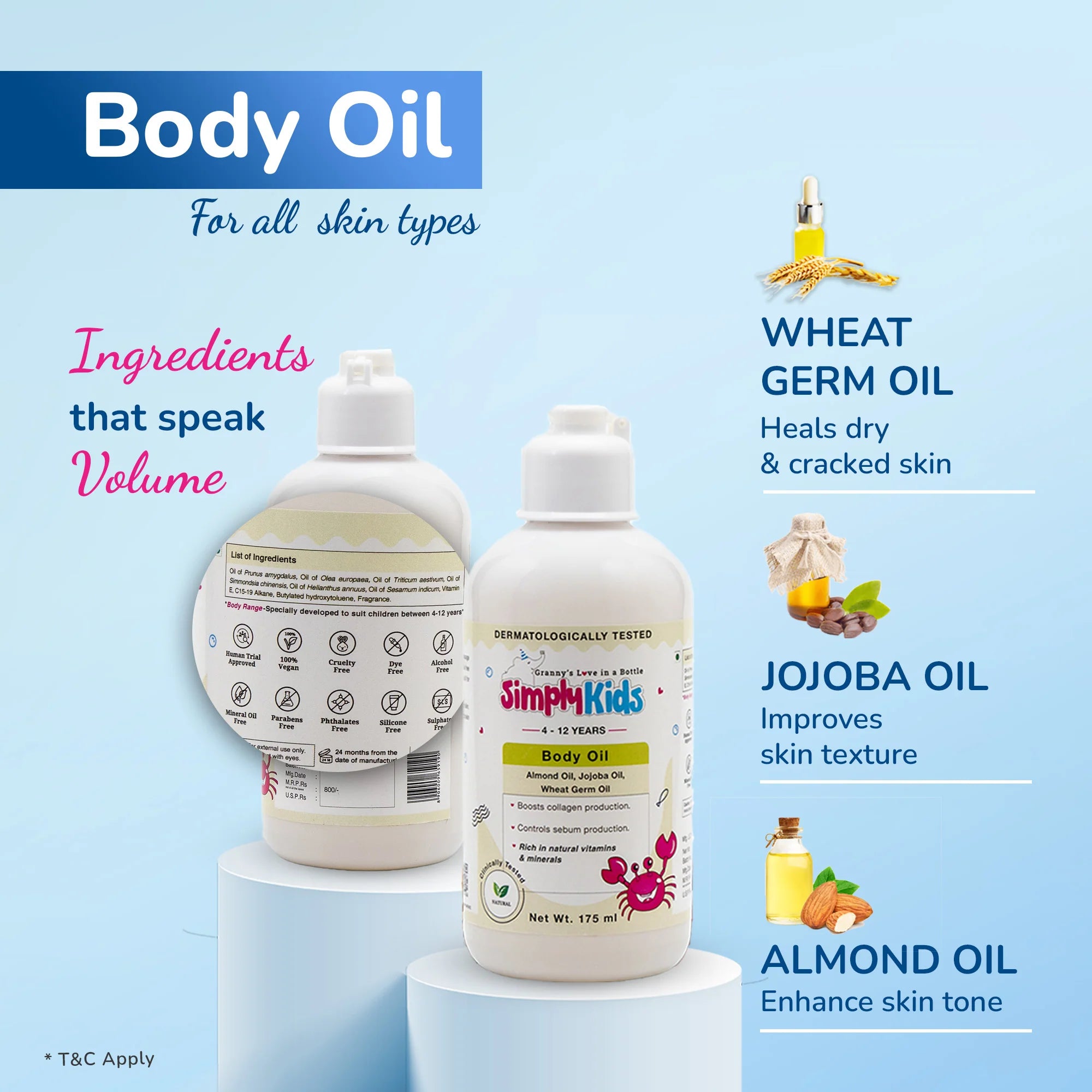 Body Oil: Oil of Prunus amygdalus, Oil of Olea europaea, Oil of Triticum aestivum, Oil of Simmondsia chinensis, Oil of Helianthus annuus, Oil of Sesamum indicum, Vitamin E, C15-19 Alkane, Butylated hydroxytoluene, Fragrance.